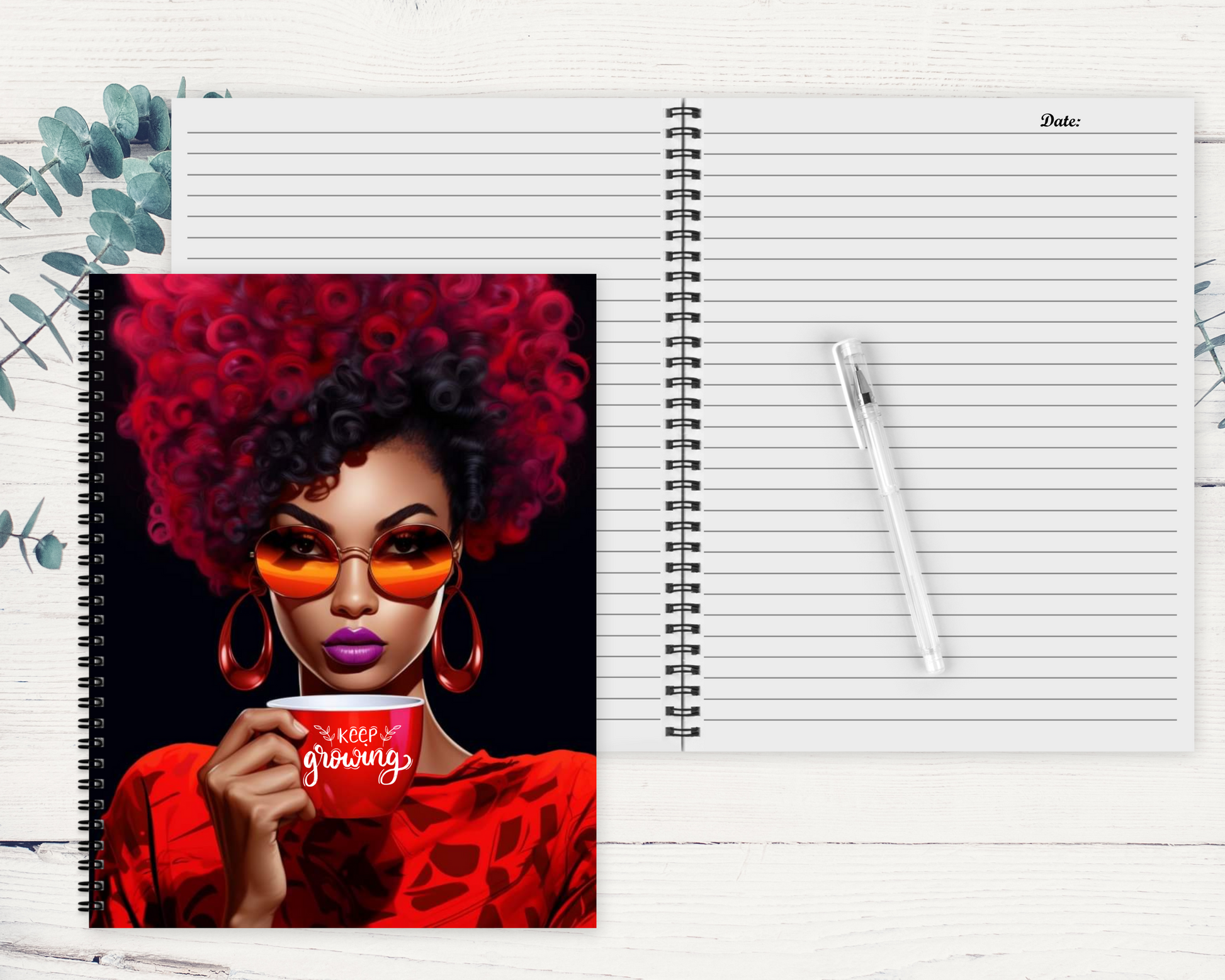 This 8x10 spiral notebook showcases stunning and elegant depictions of African American women. The paperback consists of 40 sheets of double sided lined paper and is perfect for jotting down Bible notes, journaling, creative writing, and daily tasks. It makes an excellent present for teachers, coworkers, or church groups.