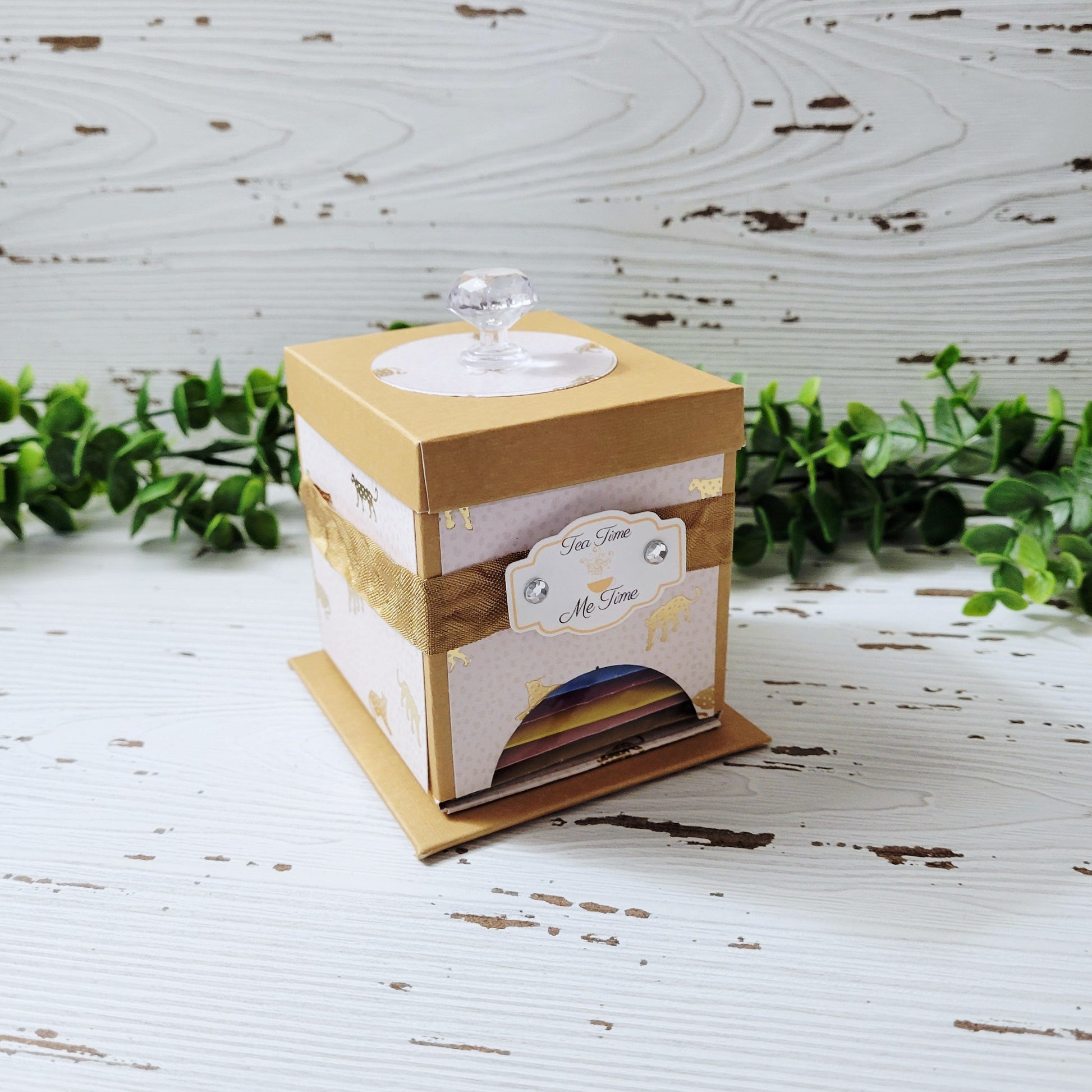 Ensure convenient access to tea with our compact tea dispenser. Constructed out of durable and colorful cardstock. These dispensers are perfect for exhibiting on your work desk or in the kitchen. Each one comes prefilled with a variety of sample teas. The lid can be easily removed for effortless refills.